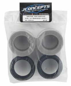 JCONCEPTS Twin Pins 2.2″ Pre-Mounted Rear Buggy Carpet Tires (White) (2) (Pink) W/12mm Hex