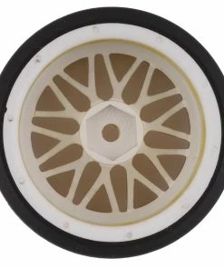YEAH RACING Spec D Pre-Mounted Drift Tires W/LS Mesh Wheels (White/Gold) (4) W/12mm Hex & 6mm Offset