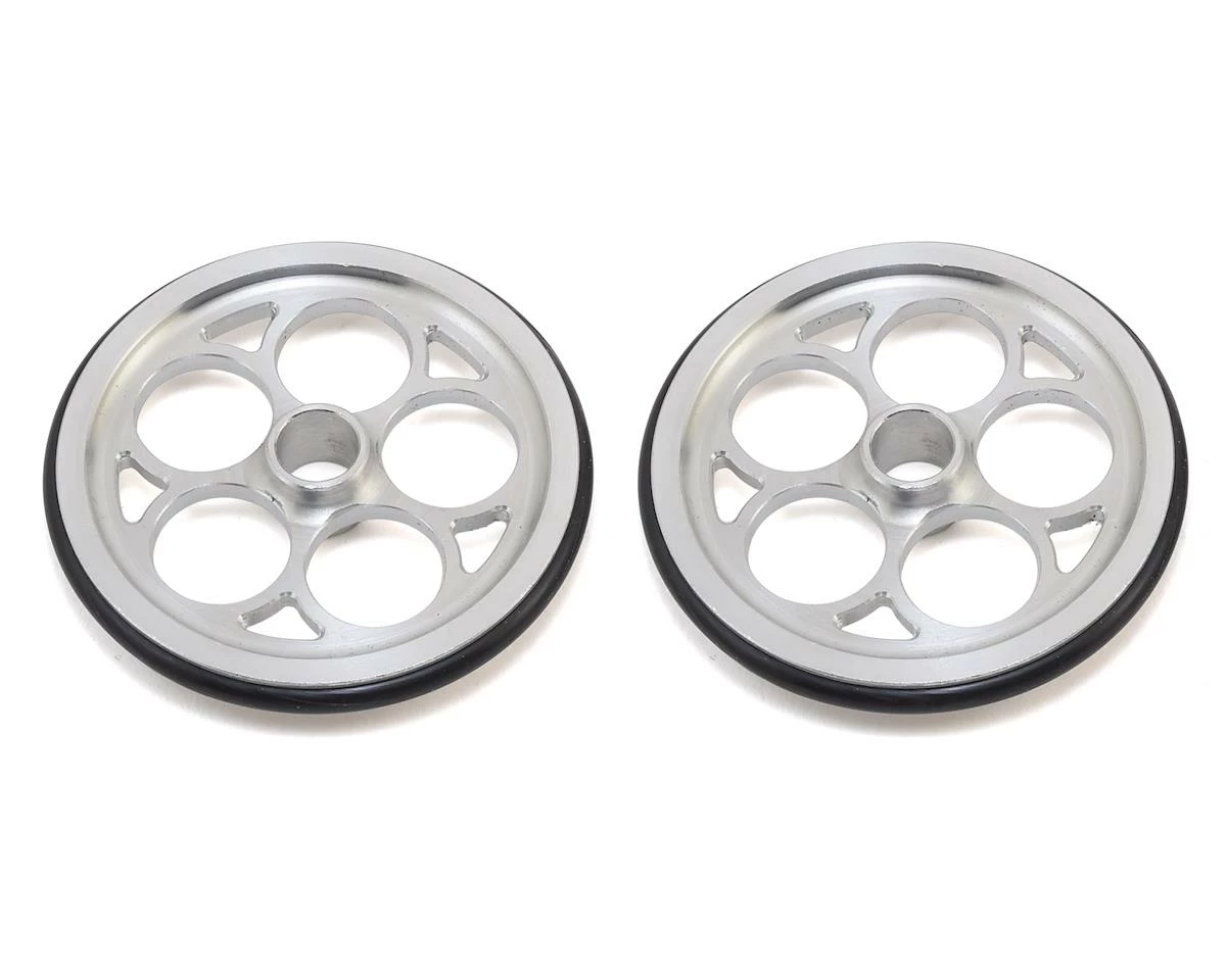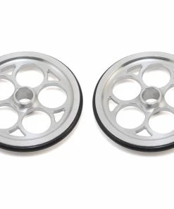 Standard flanged 1/8” x 5/16” ball bearings or RJ speed bushings fit these rims. O-Ring Tires included.