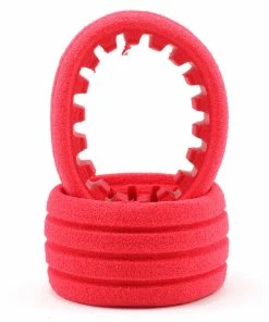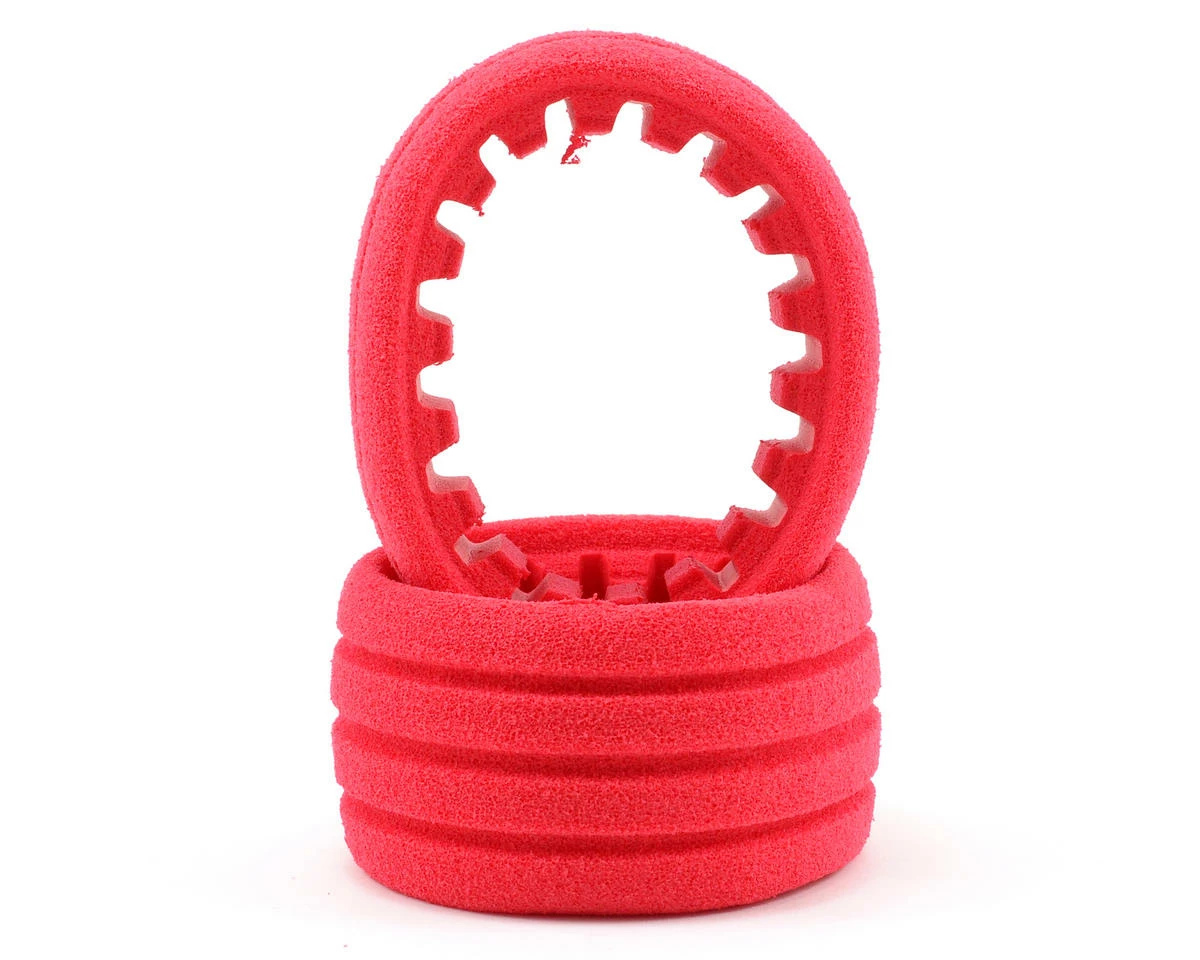 These inserts were designed to decrease the lateral deflection of the tire while at the same time increasing vertical impact absorption, to provide better handling in the bumps. Using a soft foam or hollowing out the inner circumference leaves the car feeling squirmy with a less accurate feeling through the bumps, not to mention a loss of durability. Gil Losi and Mark Pavidis knew this compromise was not the solution. The solution they found was the addition of lateral grooves to the inner diameter. The lateral grooves allow the insert to flex vertically, absorbing large impacts while still maintaining the lateral stability and overall durability AKA inserts are known for, providing you with a no compromise, high performance foam insert. The result is a more predictable handling car, with no sacrifice in insert durability.Â
