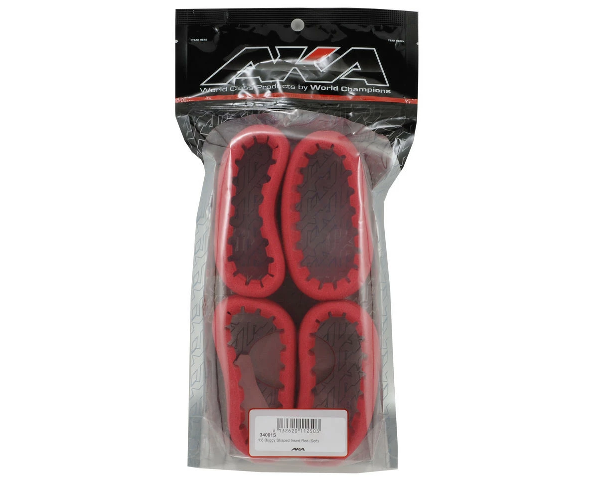 This is a set of four AKA Racing 1/8 Buggy Grooved Foam Inserts. These inserts were the “last bullet in the clip” for AKA’s assault on the 2010 IFMAR World Championships in Pattaya, Thailand, and Cody King used them to win the Worlds!