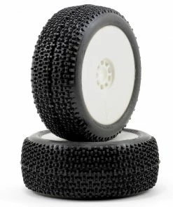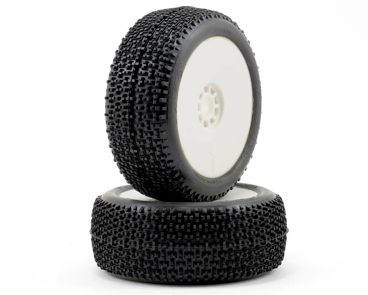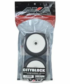 This is a set of two AKA City Block 1/8th scale off-road buggy tires, pre-mounted on white EVO wheels. AKA’s R-Line pre-mounts feature AKA’s World Championship winning EVO wheel, and when combined with the stiffener disc (34003Y or 34003W), is the most technically advanced wheel available. The R-Line pre-mount also features AKA’s soft red insert (34001S) which was also used by Cody King to win the 2010-2011 1/8 Buggy IFMAR World Championships. Combine these two revolutionary products with the quality and endurance of AKA tires and the result is the most technically advanced pre-mounted tires ever offered for 1/8 Buggies.Â