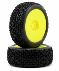 This is a set of two AKA City Block 1/8th scale off-road buggy tires, pre-mounted on yellow EVO wheels. AKA’s R-Line pre-mounts feature AKA’s World Championship winning EVO wheel, and when combined with the stiffener disc (34003Y or 34003W), is the most technically advanced wheel available. The R-Line pre-mount also features AKA’s soft red insert (34001S) which was used by Cody King to win the 2010-2011 1/8 Buggy IFMAR World Championships. Combine these two revolutionary products with the quality and endurance of AKA tires and the result is the most technically advanced pre-mounted tires ever offered for 1/8 Buggies.Â