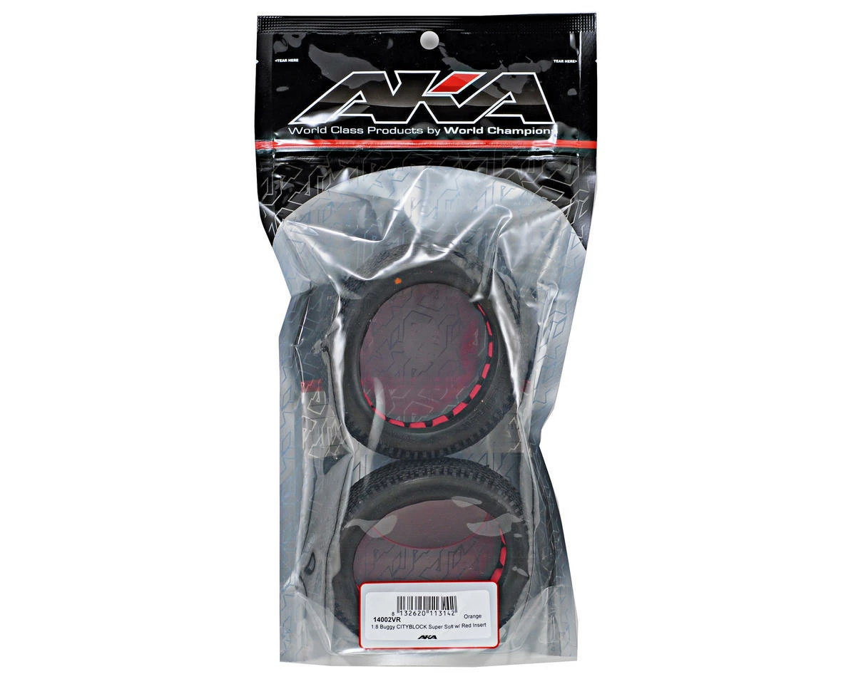 This is a set of two AKA Racing City Block 1/8 Buggy Tires. These tires include AKA Red inserts. The CITYBLOCK was the first pin on block design tire and sparked a host of copies across the industry. This innovative approach to tread design launched a tire that is unmatched in its versatility. From loose dusty tracks to high bite hard packed tracks the CITYBLOCK will deliver consistent performance and has become the work horse of the AKA tire line. You can’t go wrong with a set of these in your tire collection.