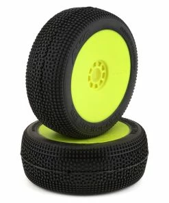 AKA Component 2AB 1/8 Buggy Mounted Tires build on a World Champion pedigree, with an updated carcass design that complements the asymmetrical tread pattern. The two different outer tread patterns will give racers the option to choose between a smooth or direct feel, depending on how the tire is mounted to the wheel*. The A side of the tire has a four row pattern with smaller, more flexible blocks, that give the tire a more forgiving feel when the A side is mounted to the outside of the wheel. The B side has three row pattern with larger, less flexible blocks, that will give the tire a more direct feel when the B side is mounted to the outside of the wheel. By using this approach, the driver can essentially get four different tires setups out of two full sets of tires, to help simplify tire selection.