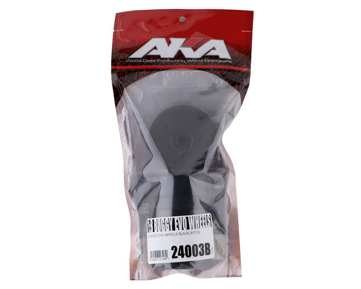 This is a set of four AKA Racing EVO 1/8th Off Road Wheels. From the brains of Mark Pavidis and Gil Losi Jr. comes a complete redesign of the AKA buggy wheel. Now that AKA’s closed cell foams have become a part of everyone’s product line it became apparent to us that all the current wheels are too soft compared to the now stiffer inserts and the ever increasing G forces of modern 1/8 buggy chassis. The goal was to achieve a stiffer wheel without sacrificing weight or durability, once again raising the bar and changing what you expect from the performance of your 1/8 buggy wheels.Â