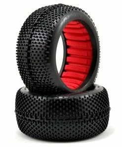 AKA EVO Truggy tires feature the ROAR legal 1:8 Truggy bead design and a redesigned carcass shape that includes internal ribbing. This bead design mimics the 1:8 buggy bead design which will make for easier assembly and a stronger bond between the wheel and the tire. The carcass shape has been refined to take advantage of the bead design. Internal ribbing has been added to minimize tire growth at high RPM and support the tire contact patch during cornering. All this adds up to much improved handling and lower lap times.