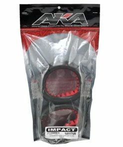 This is a set of two AKA Racing EVO Impact 1/8 Truggy Tires. The Impact tire features a dense small square lug pattern with offset lug rows in the center of the tire to deliver maximum forward traction and good wear characteristics. The two outer rows of lugs are parallel to create a circumferential groove at the edge of the tire to give the tire very predicable side bite. This allows the car to rotate in the center of the turn while still feeling very stable and predictable.