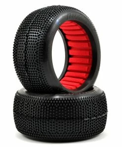AKA EVO Truggy tires feature the ROAR legal 1:8 Truggy bead design and a redesigned carcass shape that includes internal ribbing. This bead design mimics the 1:8 buggy bead design which will make for easier assembly and a stronger bond between the wheel and the tire. The carcass shape has been refined to take advantage of the bead design. Internal ribbing has been added to minimize tire growth at high RPM and support the tire contact patch during cornering. All this adds up to much improved handling and lower lap times.
