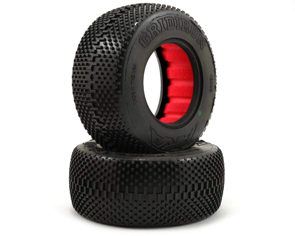 This is a set of two AKA Racing Grid Iron Short Course Tires. AKA’s indoor or “clay” compound has been finely tuned throughout 2 years of research and development, to provide maximum traction and great performance on clay tracks.