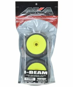 This is a set of two AKA I-Beam 1/8th scale off-road buggy tires, pre-mounted on yellow EVO wheels. AKA’s R-Line pre-mounts feature AKA’s World Championship winning EVO wheel, and when combined with the stiffener disc (34003Y or 34003W), is the most technically advanced wheel available. The R-Line pre-mount also features AKA’s soft red insert (34001S) which was also used by Cody King to win the 2010-2011 1/8 Buggy IFMAR World Championships. Combine these two revolutionary products with the quality and endurance of AKA tires and the result is the most technically advanced pre-mounted tires ever offered for 1/8 Buggies.Â