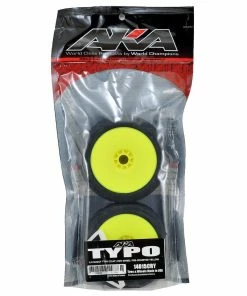 This is a pack of two AKA Racing Typo 1/8 Buggy Tires, pre-mounted on yellow EVO wheels. After a highly successful release, the 1/10 Typo quickly became a go-to indoor tire. Meet it’s big brother, the 1:8 Typo! The Typo is a very low tread pattern that has been optimized for hard-packed indoor tracks and low dust, grooved outdoor tracks.
