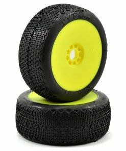 This is a pack of two AKA Racing Typo 1/8 Buggy Tires, pre-mounted on yellow EVO wheels. After a highly successful release, the 1/10 Typo quickly became a go-to indoor tire. Meet it’s big brother, the 1:8 Typo! The Typo is a very low tread pattern that has been optimized for hard-packed indoor tracks and low dust, grooved outdoor tracks.