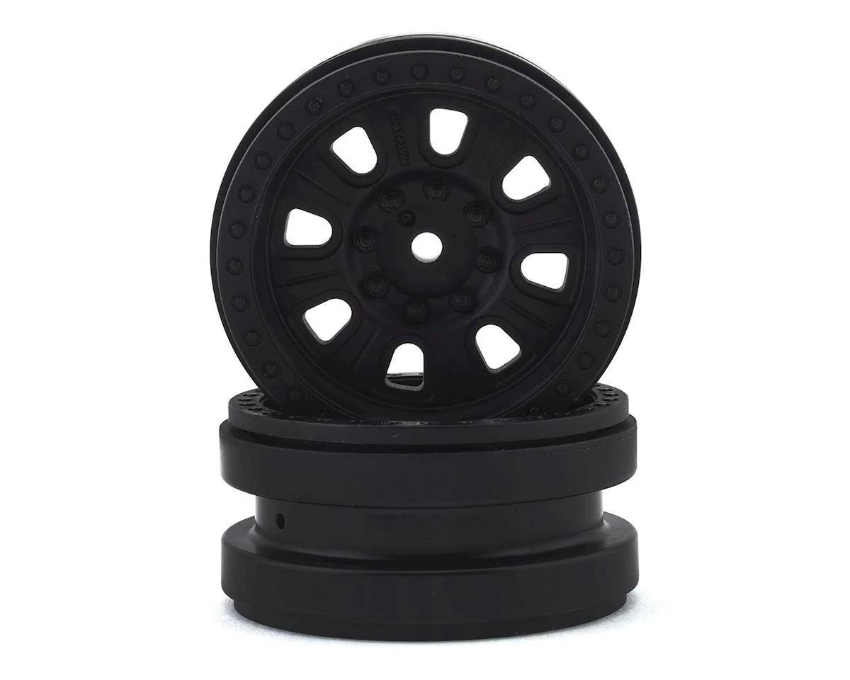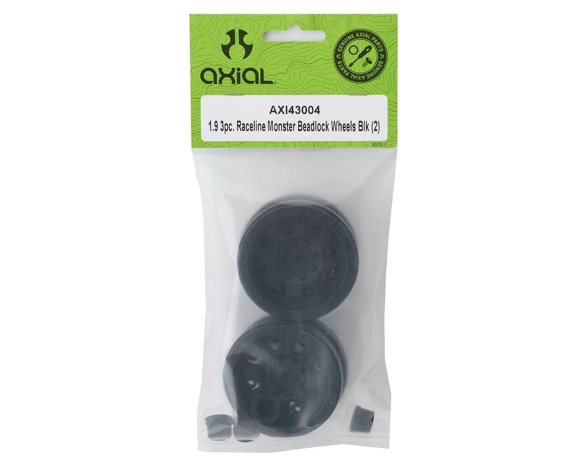 This is a replacement set of two Axial Black 1.9 Raceline Monster Beadlock Wheels, intended for use with the Capra 1.9 Unlimited Trail Buggy 1/10 Rock Crawler Kit.