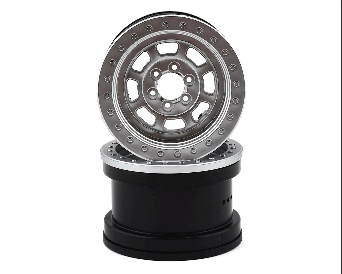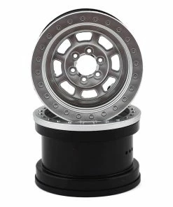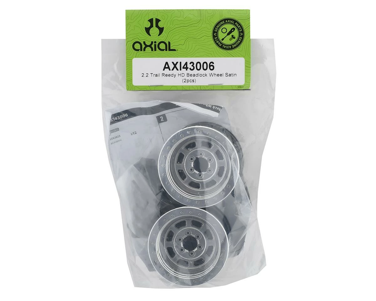 Axial Trail Ready HD 2.2″ Beadlock Wheels. These wheels are included as stock equipment on the RR10 Bomber 2.0 “Bomber Fabrication” model, and feature a satin silver finish. Package includes two wheels, two short hex hubs, two long hex hubs and hardware.
