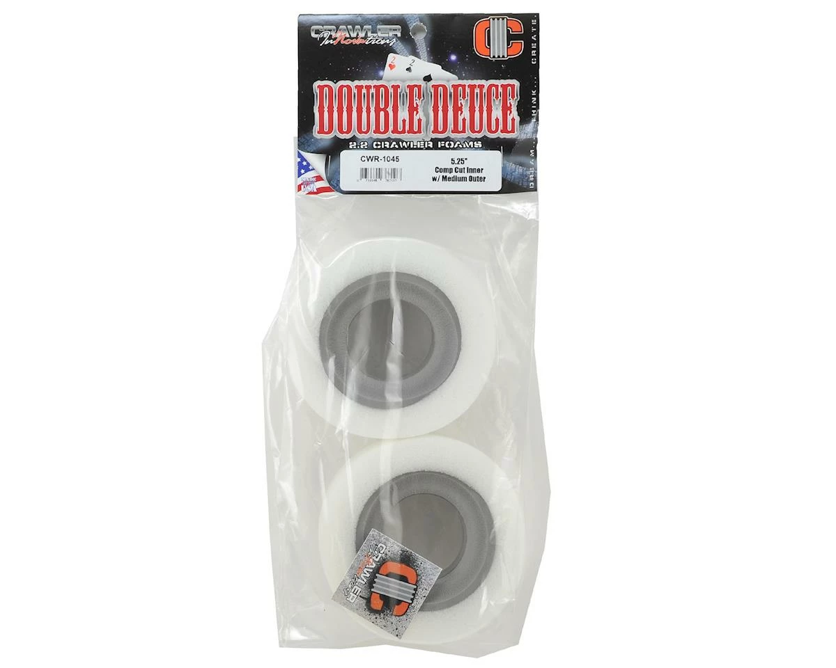 This is a pack of two Crawler Innovations Double Deuce 5.25 Dual Stage 2.2 Crawler Tire Inserts. These inserts feature a comp cut inner foam, with a medium density outer foam. Crawler Innovations has brought a unique material and insert design to the crawler world that will dramatically improve the performance of your rig. The Double Deuce design features a closed cell inner foam combined with a conventional outer foam insert. The closed cell inner foam is super dense, water proof, is not temperature sensitive and is extremely durable. The conventional outer foam is not temperature sensitive, but it is not water proof.