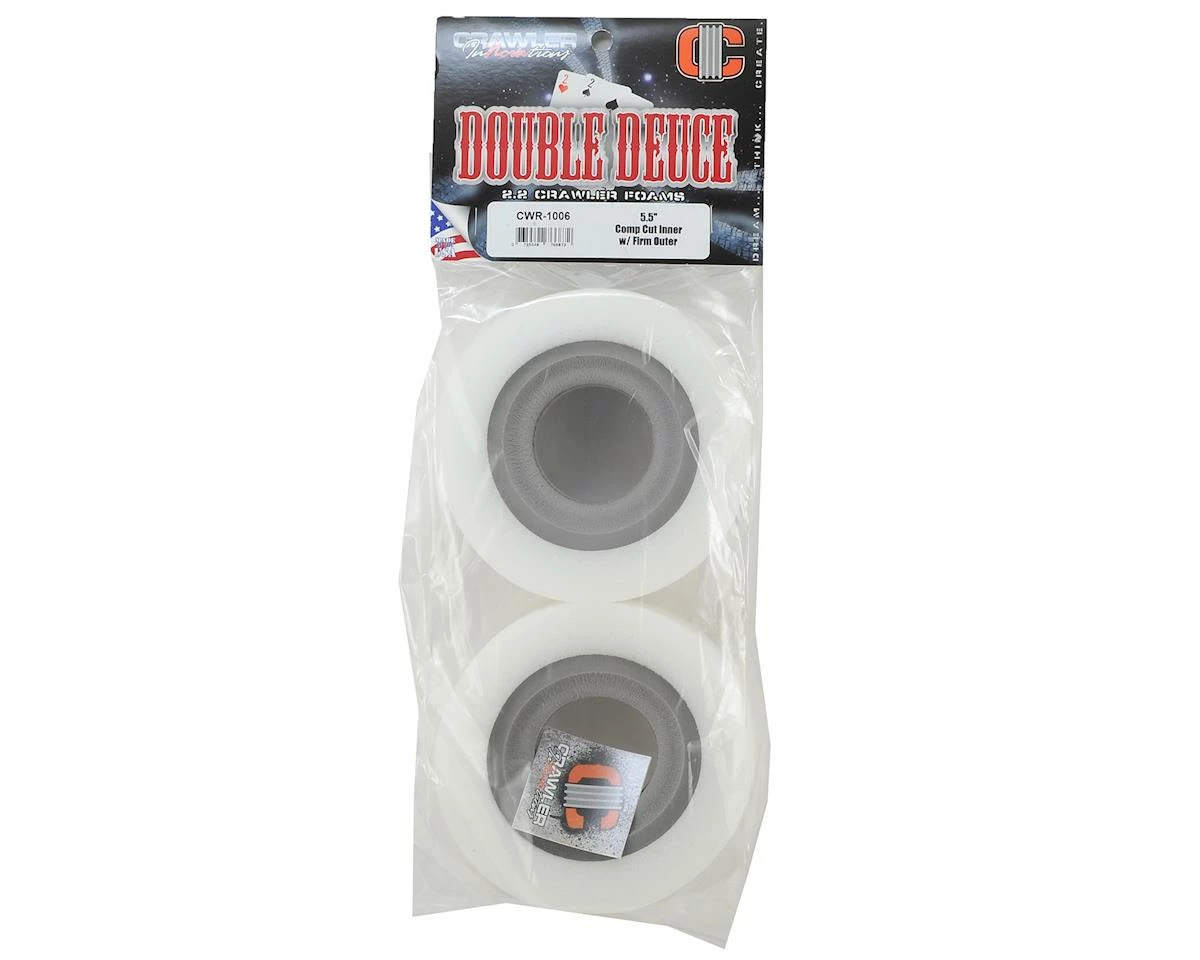 This is a pack of two Crawler Innovations Double Deuce 5.5 Crawler Tire Inserts. These inserts feature a comp cut inner foam, with a hard density outer foam. Crawler Innovations has brought a unique material and insert design to the crawler world that will dramatically improve the performance of your rig. The Double Deuce design features a closed cell inner foam combined with a conventional outer foam insert. The closed cell inner foam is super dense, water proof, is not temperature sensitive and is extremely durable. The conventional outer foam is not temperature sensitive, but it is not water proof.