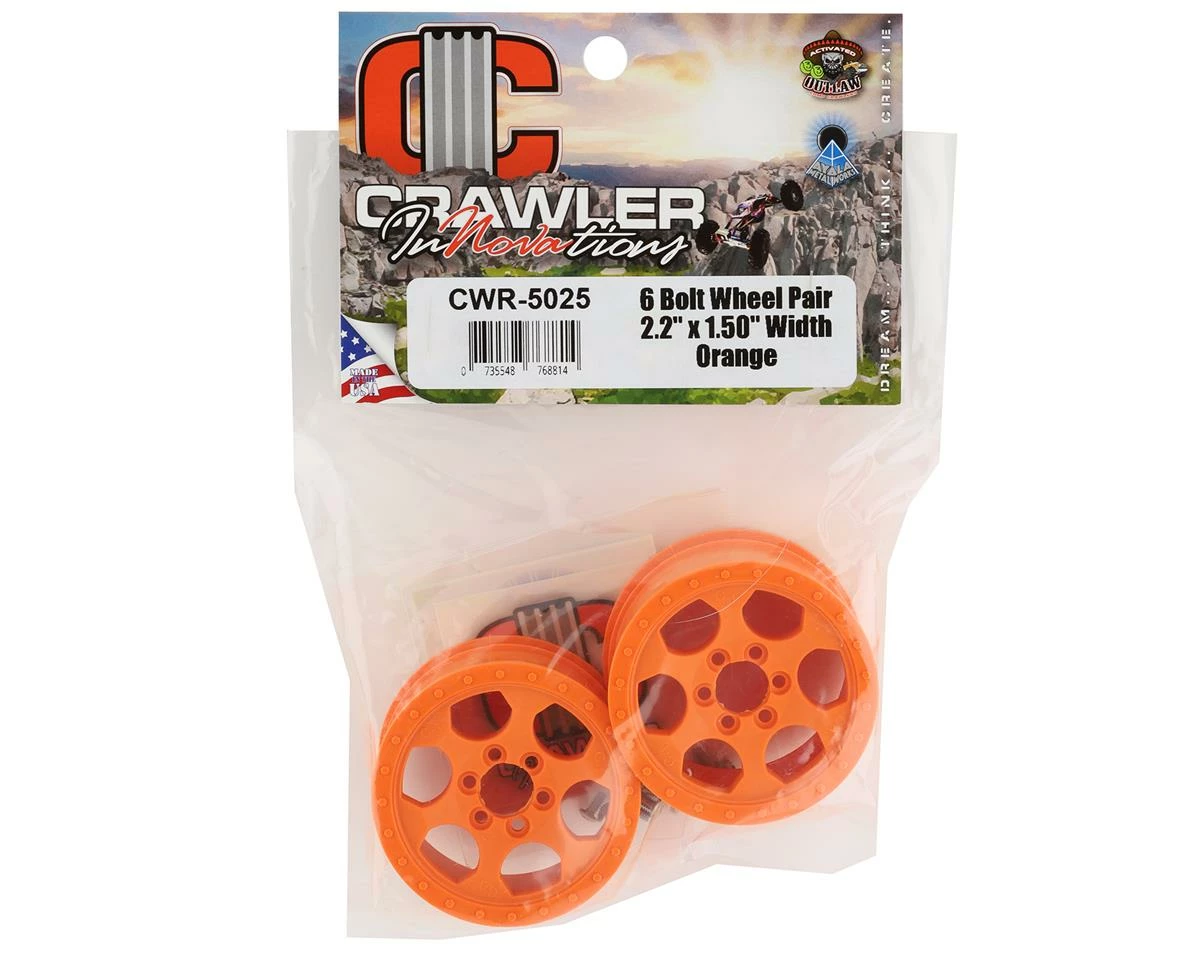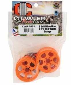 The Crawler Innovations Double Deuce 6 Bolt Performance Wheel is a glue on wheel with a 2.2″ diameter bead channel wheel available in 1.0 and 1.5″ widths, and is designed to be used with Vanquish Products SLW hubs. The Axial Trail Ready plastic hubs also fit these wheels for the weight conscious comp crawler. Package includes two orange wheels and stainless steel button head hub mounting hardware.