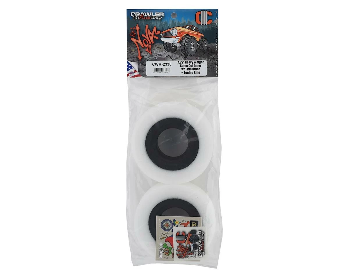 Crawler Innovations Lil Nova 4.75″ Heavy Weight Crawler Foams are designed for heavy rc crawlers and speed applications. The Heavy Weight inner provides increased steering response, eliminates tire roll over and supports weights of 10 pounds and heavier.