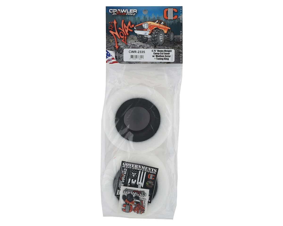 Crawler Innovations Lil Nova 4.75″ Heavy Weight Crawler Foams are designed for heavy rc crawlers and speed applications. The Heavy Weight inner provides increased steering response, eliminates tire roll over and supports weights of 10 pounds and heavier.