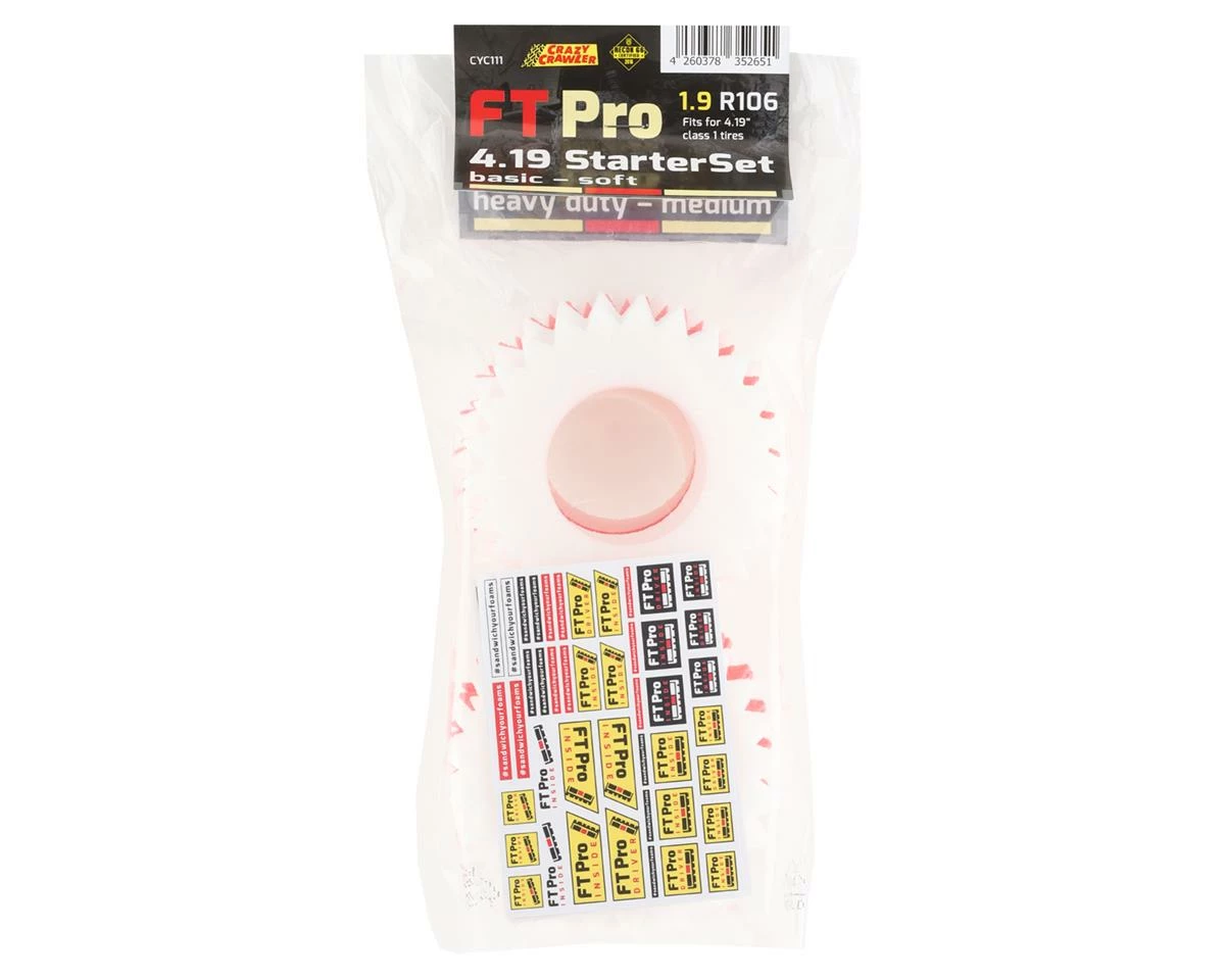 The Crazy Crawler LaserFoam Class 1 FT Pro 1.9 Crawler Tire Insert Starter Set is a modular tire insert option developed for competition and performance focused drivers running 37mm wide, 4.19″ tires. The FT Pro system uses three user selectable LaserFoam rings in each tire. The red “Spur Master” is the ring that provides the lateral stability, with 10mm and 15mm open cell rings on each side to fill out the tire.