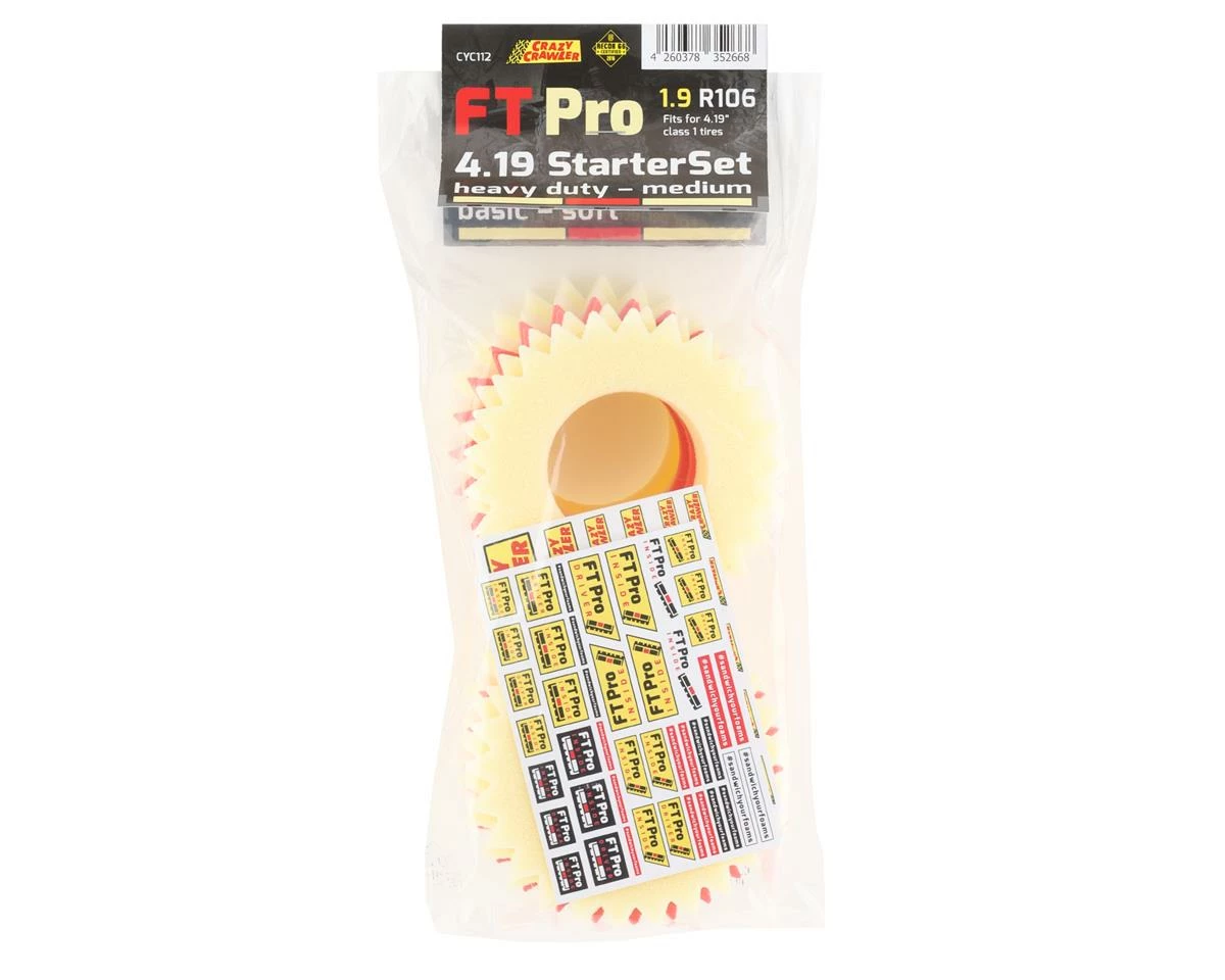 The Crazy Crawler LaserFoam Class 1 FT ProHD 1.9 Crawler Tire Insert Starter Set is a modular tire insert option developed for competition and performance focused drivers running 37mm wide, 4.19″ tires. The FT Pro system uses three user selectable LaserFoam rings in each tire. The red “Spur Master” is the ring that provides the lateral stability, with 10mm and 15mm open cell rings on each side to fill out the tire.Â