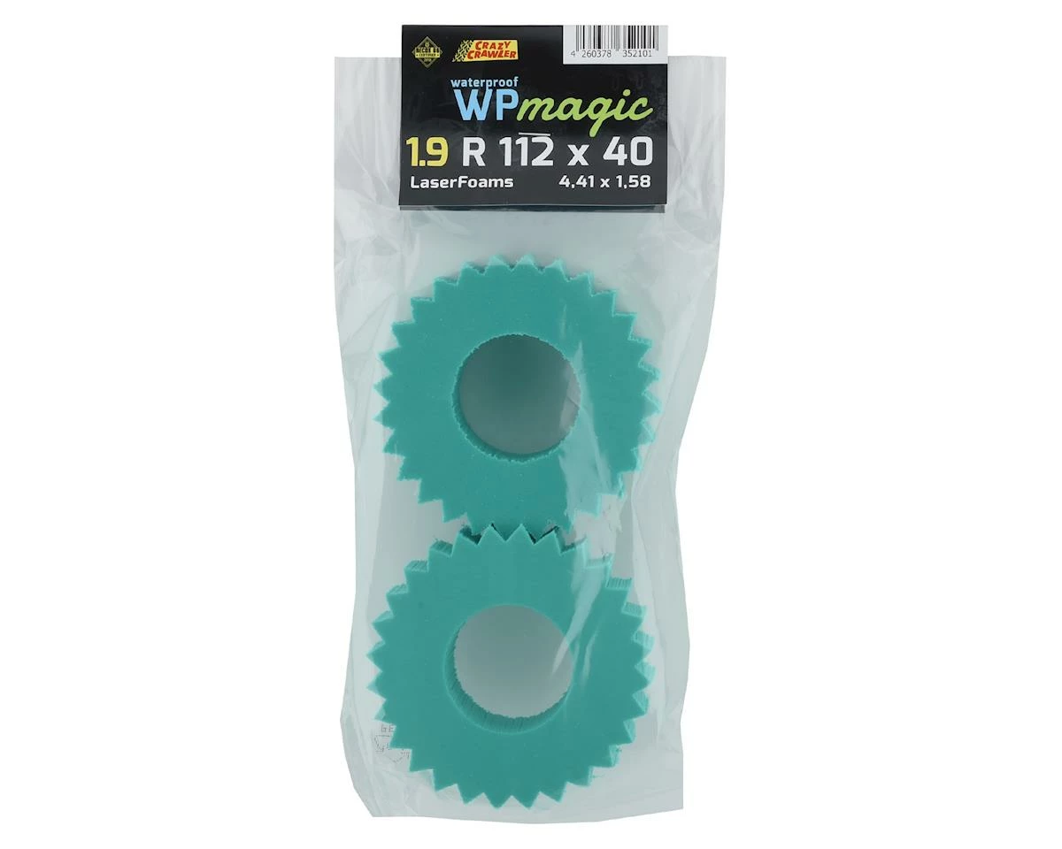 Crazy Crawler LaserFoam “WP Magic 112×40” 1.9 Foam Crawler Tire Inserts are precision cut, waterproof, closed cell foam tire inserts designed for performance. The unique closed cell material clings to the tire, and this direct connection helps to reduce internal movement of the insert, helping to increase stability. The material and cut shape ensure that the tire only rolls in the area of the tread that is in contact with the surface, creating great driving characteristics and an incredibly scale look. Â