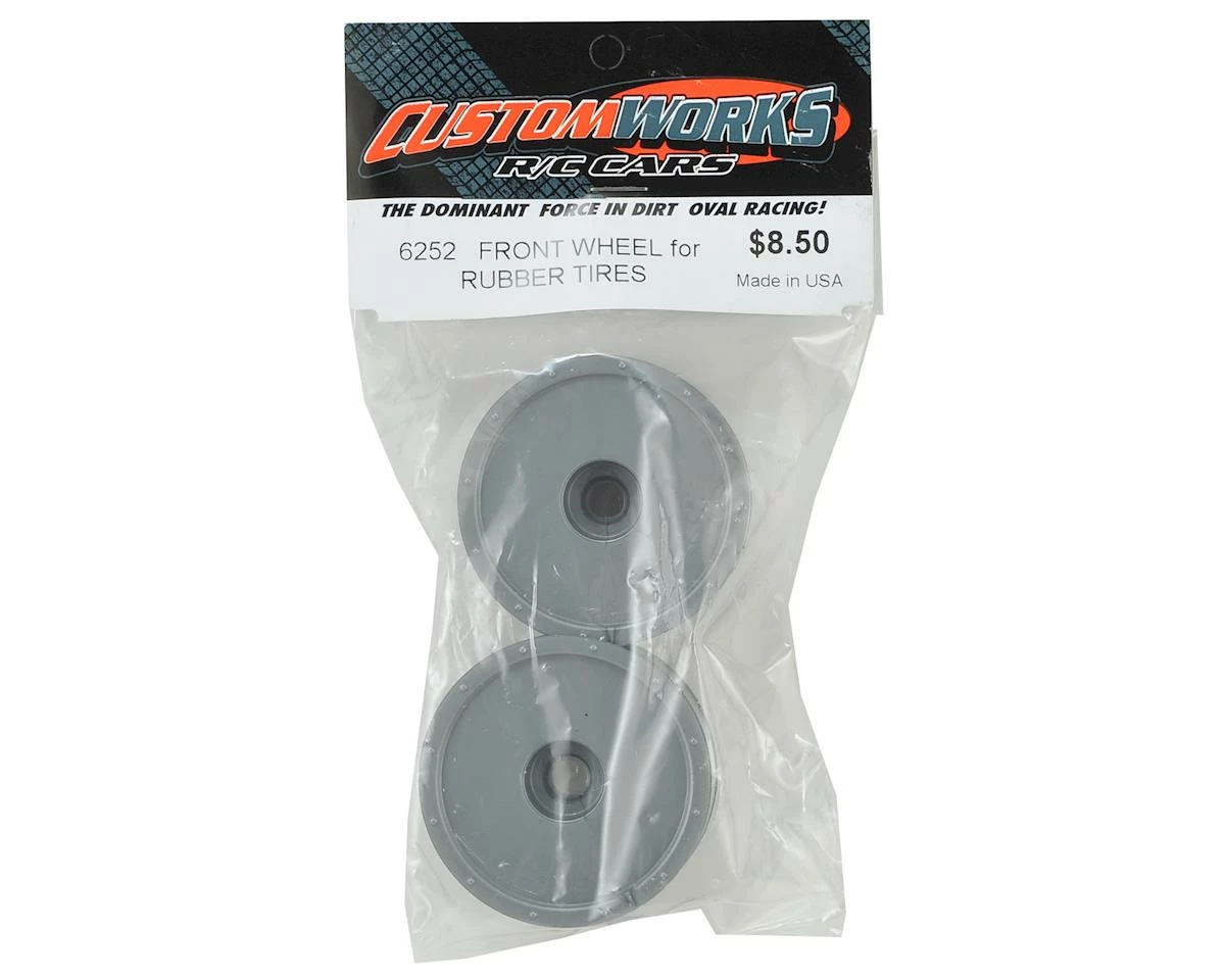 Custom Works Rubber Tire Dirt Oval Front Wheel. This is the standard rubber tire wheel, and is the same wheel used on Custom Works pre-mounted rubber tires.