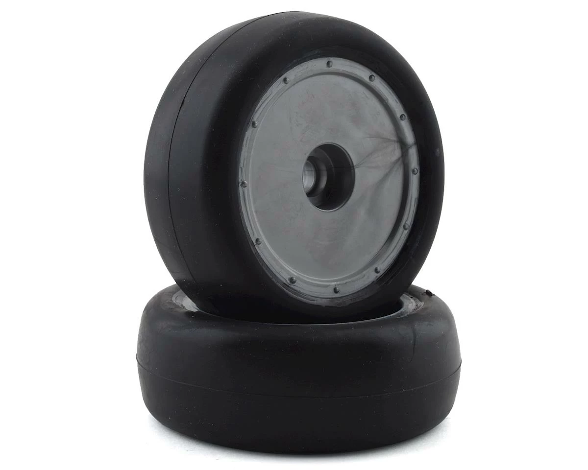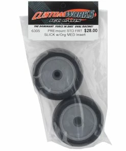 Custom Works Slick Pre-Mounted Front Tires. These tires are available in standard and soft “HB” compounds and are pre-mounted on standard Custom Works 2.0″ rubber tire wheels with orange medium inserts. Package includes two front tires.