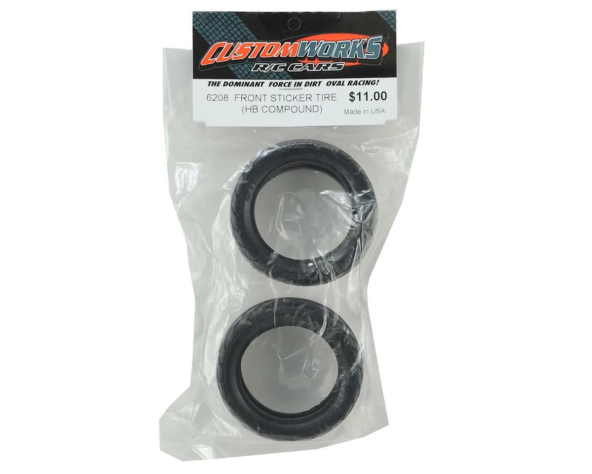 Custom Works Sticker Front Dirt Oval Tires. These tires are recommended for dirt applications. Package includes two tires.