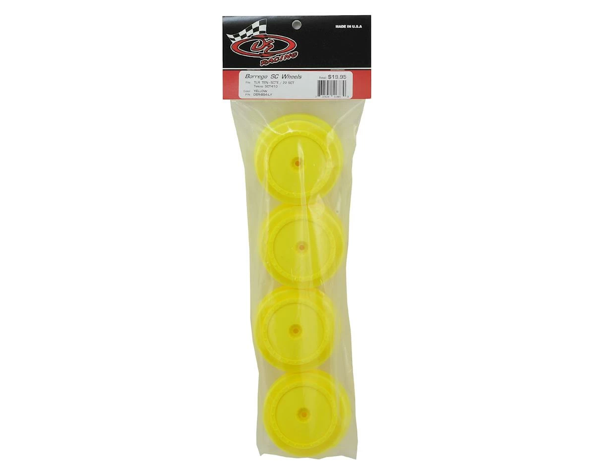 This is a pack of four DE Racing “Borrego” SC Wheels, and are intended for use with the Losi TEN-SCT trucks, as well as the TLR 22SCT. DE Racing has developed the first true dish wheel for the Short Course market. Modeled after the 1/10 buggy line, DE’s “Borrego” wheels feature the realistic scale appearance of a beadlock wheel with mud cover. They were also designed for use with DE’s optional sticker disks to provide a greater level of color customizing options.