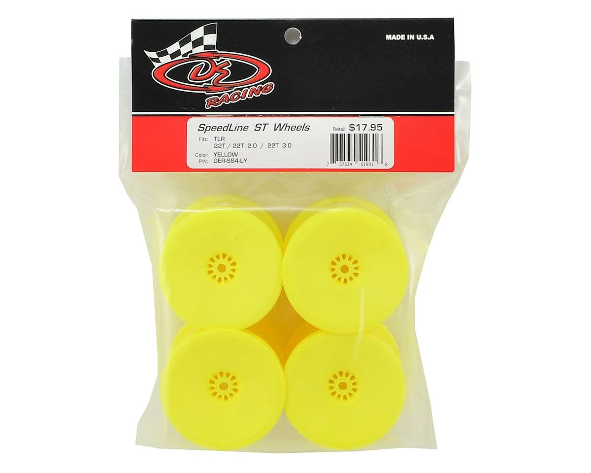 This is a pack of four DE Racing “Speedline” 2.2″ 1/10 Stadium Truck Hex Wheels. Blending a traditional style dish wheel to the precision and durability DE Racing is known for, the Speedline series wheels make a statement to the racing community even larger than the logo on the face. Features include a channel for easier tire gluing, start holes for optional venting, and improved wheel flex to optimize traction and handling.