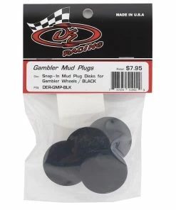 This is a four pack of DE Racing Gambler Dirt Oval Mud Plugs in Black color. Introducing a clever solution to the problem of mud packing into the outer side of a wheel that perfectly emulates those found in full scale racing.