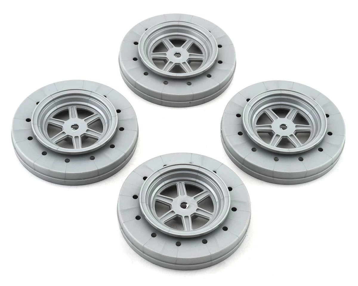 This is a set of DE Racing Silver Gambler Drag Racing Front Wheels are an innovative front wheel design for RC Drag racing. Designed to push the limits of performance and style for the 132 crew this wheel features a narrow width just like the full size cars they emulate and tip the scales at a mere 35 grams per assembled wheel, tire, and insert set.