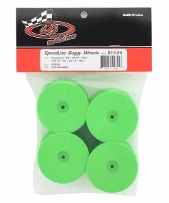 This is a pack of four DE Racing “Speedline” 2.2 1/10 Buggy Rear Wheels. Blending a traditional style dish wheel to the precision and durability DE Racing is known for, the Speedline series wheels make a statement to the racing community even larger than the logo on the face. Features include a channel for easier tire gluing, start holes for optional venting, and improved wheel flex to optimize traction and handling.