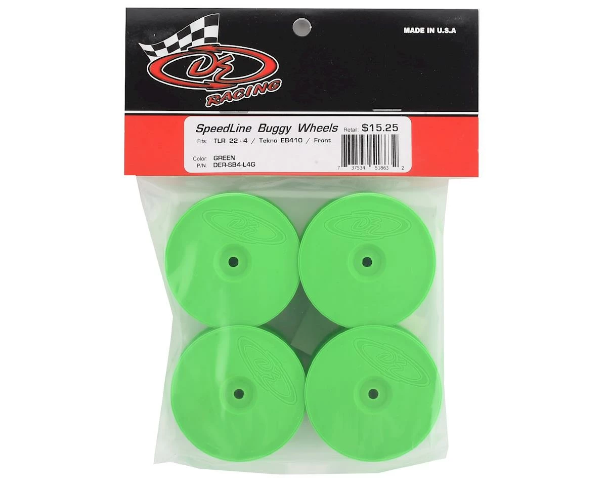 DE Racing “Speedline” 2.2 4wd Front Buggy Wheels for the Losi 22-4 and Tekno EB410 blend a traditional style dish wheel to the precision and durability DE Racing is known for. The Speedline series wheels make a statement to the racing community even larger than the logo on the face. Features include a channel for easier tire gluing, start holes for optional venting, and improved wheel flex to optimize traction and handling. Package includes four wheels.