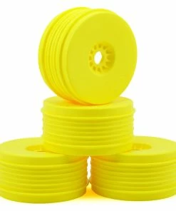 This is a pack of four DE Racing Speedline Plus 1/8 Buggy Wheels. Raising the bar on the competition, DE Racing SpeedLine PLUS delivers maximum corner control and stability by utilizing the DE Racing “Sure Lock” foam retention system. This system, comprised of radial ribs that lock the wheel and foam insert together, retains maximum tire traction to the racing surface while eliminating the vague inconsistencies that come from an insert that is free to move around on its wheel. Combine this with the highest level of precision, durability, and a scant 38 gram race weight and the choice is clear. Don’t settle for second best, get “locked in” with DE Racing SpeedLine PLUS.