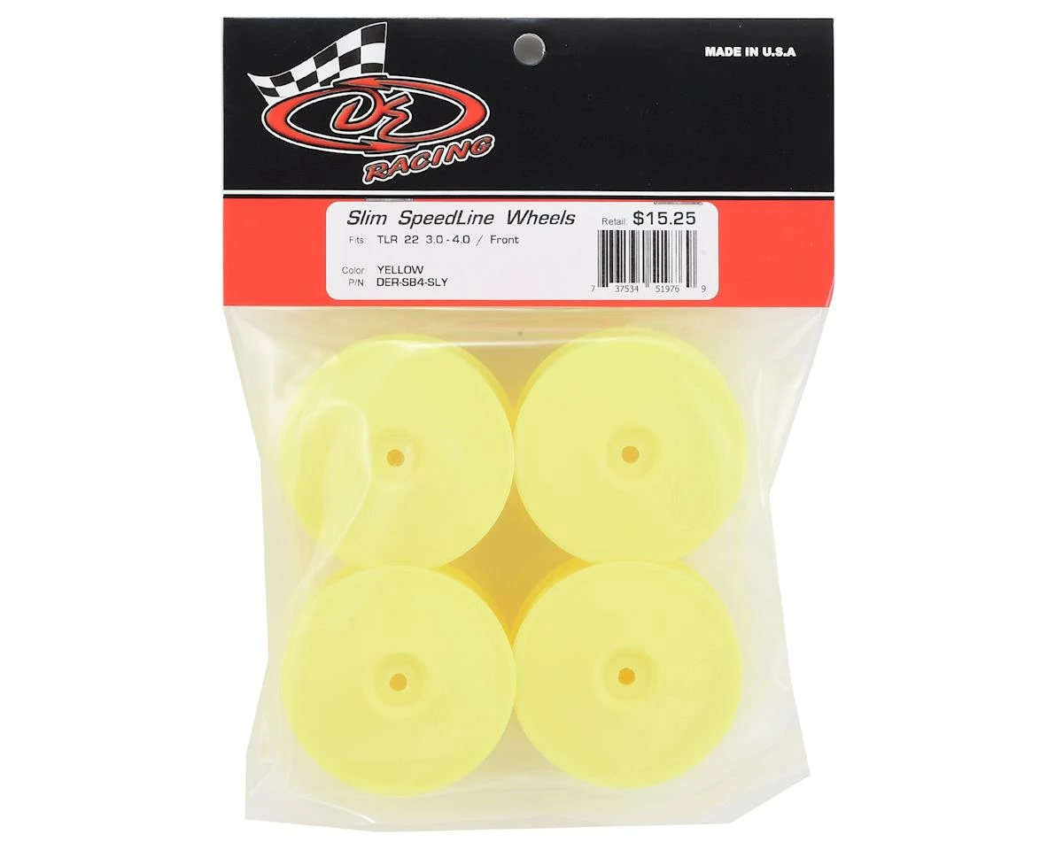 DE Racing Speedline “Slim” 2.2 2WD Front Buggy Wheels for the Losi 22 4.0 blend a traditional style dish wheel to the precision and durability DE Racing is known for. The Speedline series wheels make a statement to the racing community even larger than the logo on the face. Features include a channel for easier tire gluing, start holes for optional venting, and improved wheel flex to optimize traction and handling. Package includes four wheels.