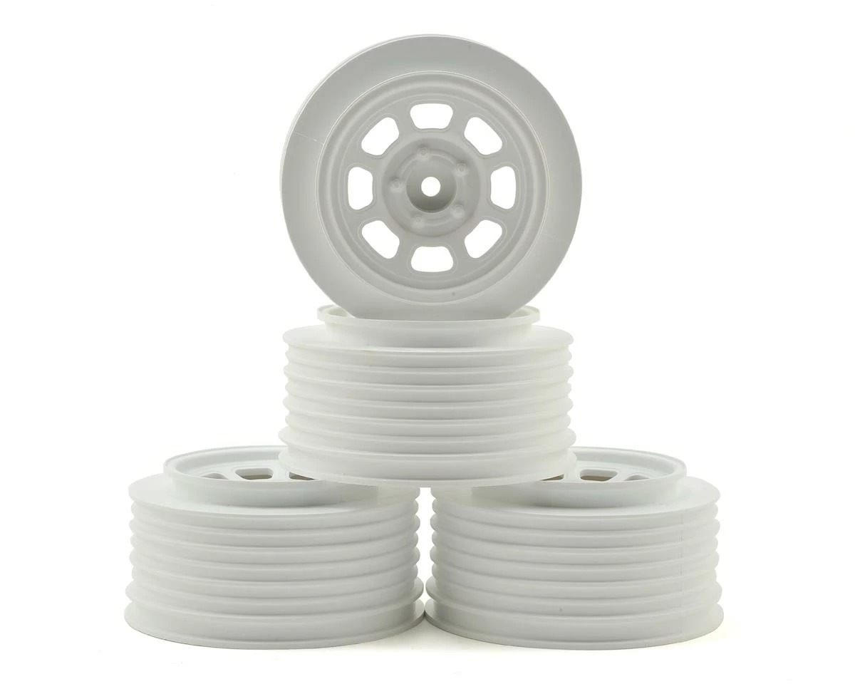 These DE Racing Speedway Short Course Wheels have a 21.5mm backspacing, and fit the rear of the Traxxas Slash, and any other truck that uses Traxxas Slash rear offset wheels.