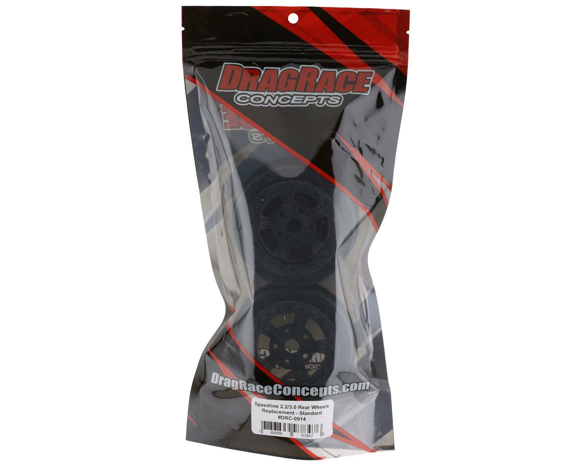 DragRace Concepts Speedline 2.2/3.0 Replacement Rear Wheel. These are a replacement for the Speedline 2.2/3.0 rear wheels (DRC-0911). These are an excellent option when looking to either replace the wheel or mount up spare tires to be ready for your next run. Package includes two standard width replacement rear wheels.
