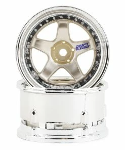 DS Racing Rift Element 5 Spoke Drift Wheels (Gold & Chrome) (2) (Adjustable Offset) W/12mm Hex