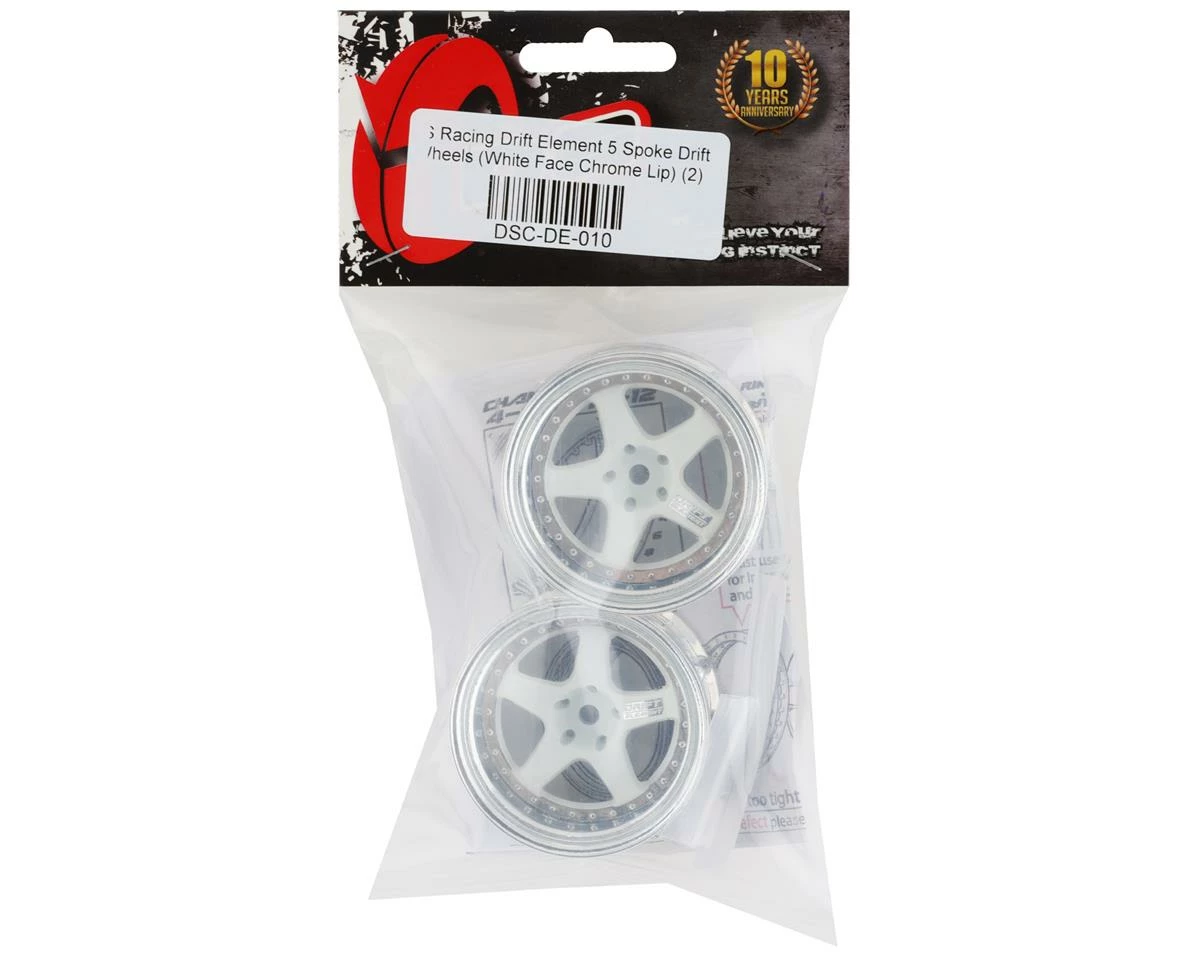 The DS Racing Drift Element 5 Spoke Drift Wheels are a great option to add that custom look to your RC drift car. These wheels feature an adjustable offset allowing you to have a factory, tucked or even stanced look. Each wheel is broken down into five pieces: Inner wheel, Outer wheel, Wheel Face, Inner rivet ring and Outer rivet ring. DS Racing has made these components available in multiple color and style options allowing you to select the wheels that will best match your build.Â