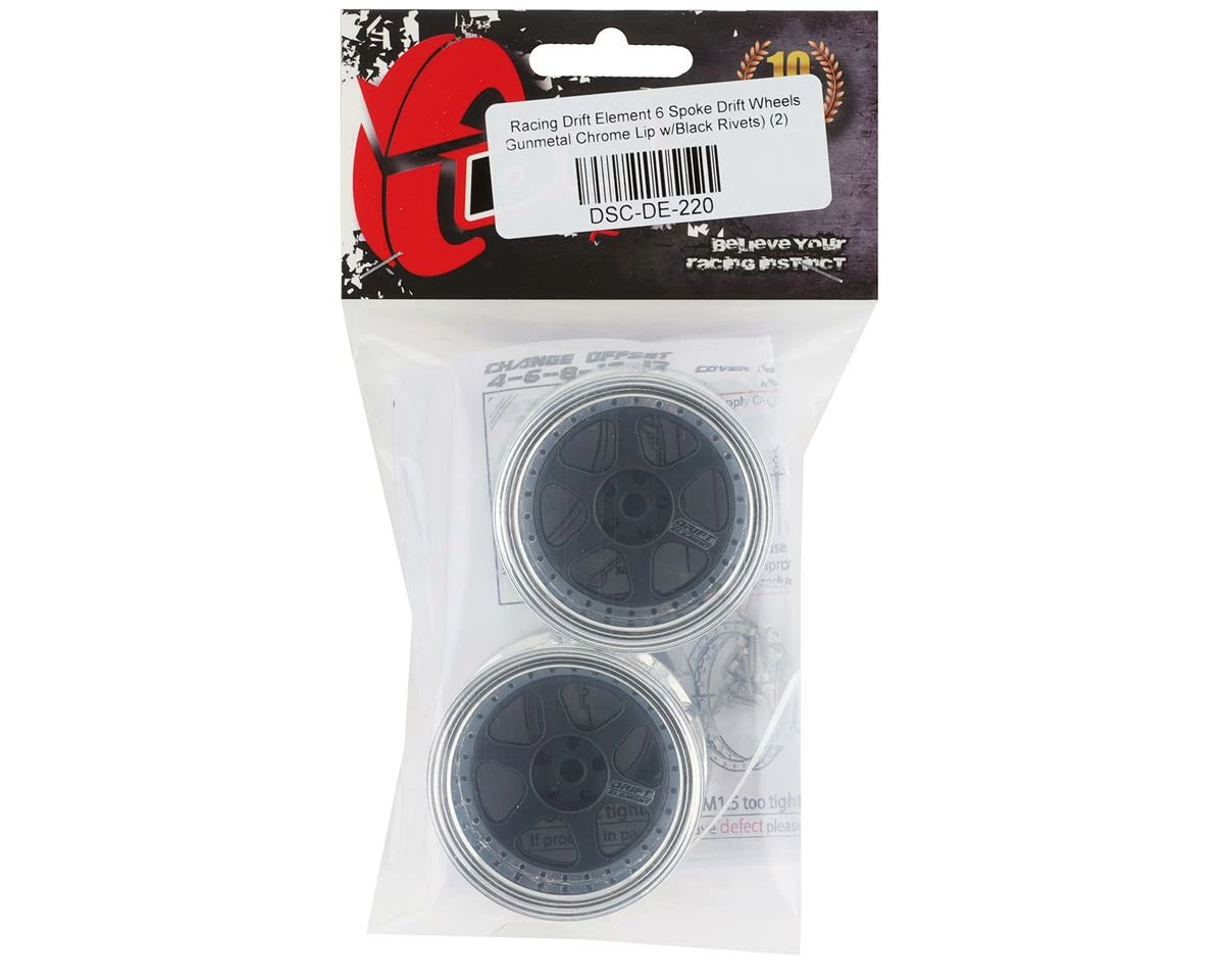 DS Racing Rift Element 6 Spoke Drift Wheels (Gunmetal W/Black Rivets) (2) (Adjustable Offset) W/12mm Hex