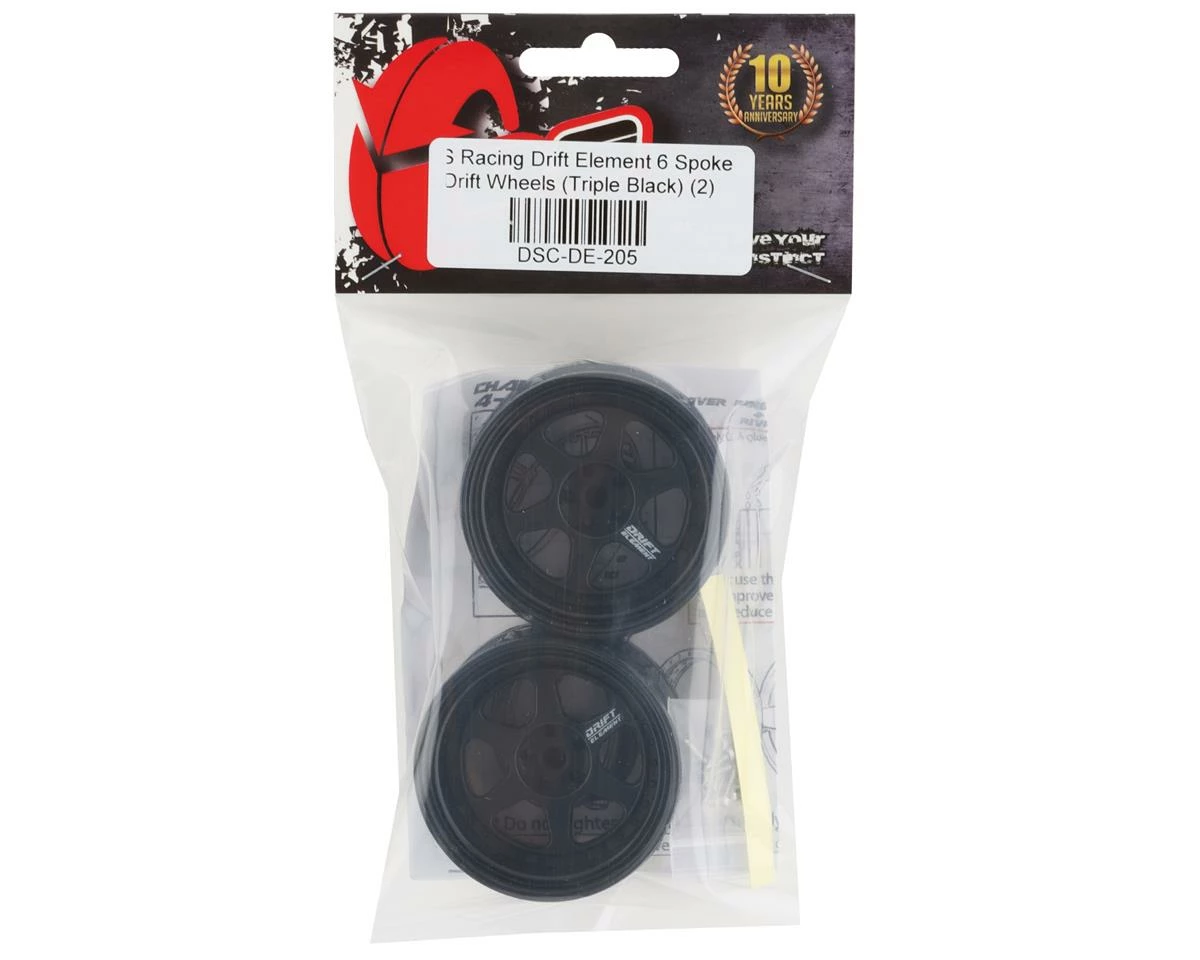 The DS Racing Drift Element 6 Spoke Drift Wheels are a great option to add that custom look to your RC drift car. These wheels feature an adjustable offset allowing you to have a factory, tucked or even stanced look. Each wheel is broken down into five pieces: Inner wheel, Outer wheel, Wheel Face, Inner rivet ring and Outer rivet ring. DS Racing has made these components available in multiple color and style options allowing you to select the wheels that will best match your build.