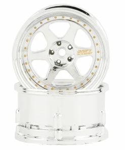 DS Racing Rift Element 6 Spoke Drift Wheels (Triple Chrome W/Gold Rivets) (2) (Adjustable Offset) W/12mm Hex