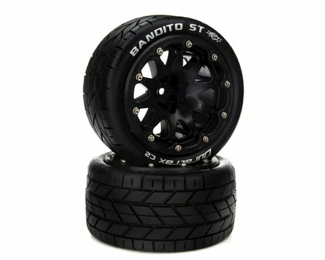This is a pack of two pre-mounted DuraTrax Bandito ST Belted 2.8″ 2WD Truck Tires. These tires are C2 soft rubber compound and are glued to the wheel, compatible on the front or rear of Arrma 3S BLX models that use a 14mm wheel hex.  Â