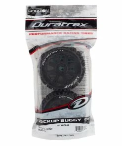 These DuraTrax 1/8 Buggy tires are pre-mounted to a 17mm hex wheel for 1/8 scale use. They feature a C2 rubber compound, installed foam insert, and are glued and ready for use. Package includes two pre-mounted tires.