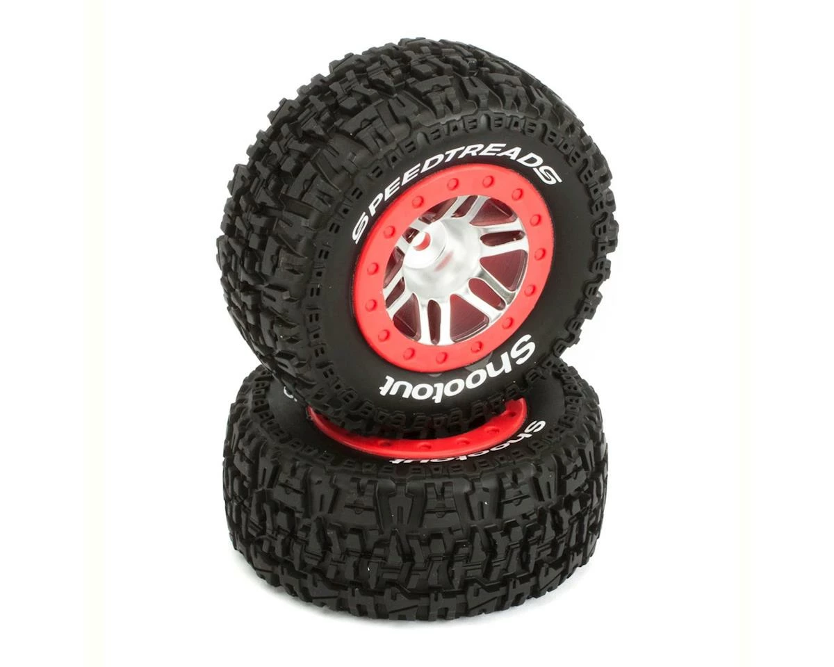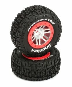 This is pack of two premounted DuraTrax SpeedTreads Shootout Short Course Tires, compatible on the rear of the Slash 2WD and Rustler 2WD, but compatible on the Front and Rear of the Slash 4X4.
