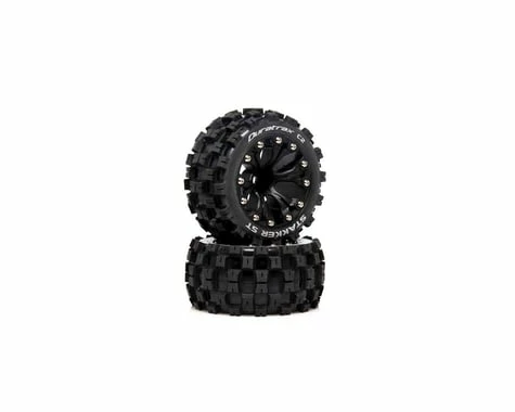 This is a pack of two pre-mounted DuraTrax Stakker ST 2.8″ 2WD Stadium Truck Tires with a 0.5 Offset. These tires are compatible on the front and rear with most 1/10 scale 2WD stadium trucks that use a 12mm hex.