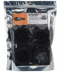 Firebrand Alpha Dog RTX Pre-Mounted 1/8 Buggy Tires feature AlphaDog–RTX 1: 8 Scale Buggy Race wheels and Omega-RTX, Dirt tires. Both are made from the highest quality ABS plastic and rubber materials available. Omegas feature a “staggered-square” knobby tread design surrounded by sharp, omega-shaped treads. These tires give your vehicle all the extra traction you’ll ever need to pull out front and get the win. This wheel and tire set works best on packed, dirt course tracks. AlphaDog–RTX wheel and tire set are standard size and will work with most 1:8 scale race buggies. Wheel Size w/Tire: 1.75” (45mm) x 4.25” (108mm). 17mm, hex-fit hubs.